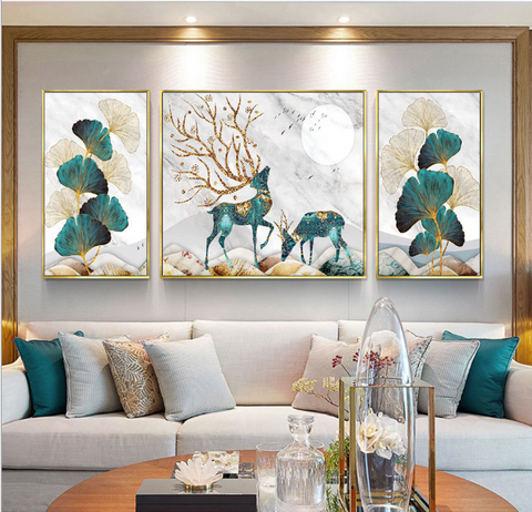 136x52cm 3pcs Deer Cross Stitch Kits 11CT Stamped Full Range of Embroidery Starter Kit for Beginners Pre-Printed Pattern