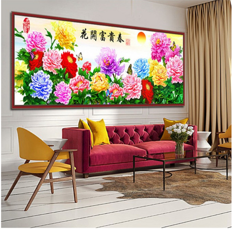 150x58cm Flowers Bloom Cross Stitch Kits 11CT Stamped Full Range of Embroidery Starter Kit for Beginners Pre-Printed Pattern