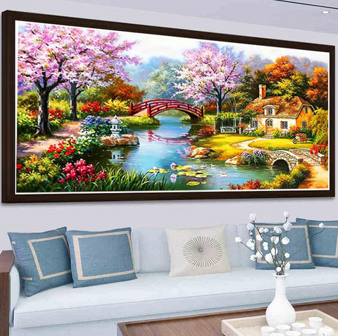 153x82cm Dream home Cross Stitch Kits 11CT Stamped Full Range of Embroidery Starter Kit for Beginners Pre-Printed Pattern