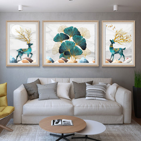 165x60cm Auspicious Deer 3 PCS Cross Stitch Kits 11CT Stamped Full Range of Embroidery Starter Kit for Beginners Pre-Printed Pattern