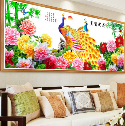 Big Size 190x75cm Beautiful Peacock Cross Stitch Kits 11CT Stamped Full Range of Embroidery Starter Kit for Beginners Pre-Printed Pattern
