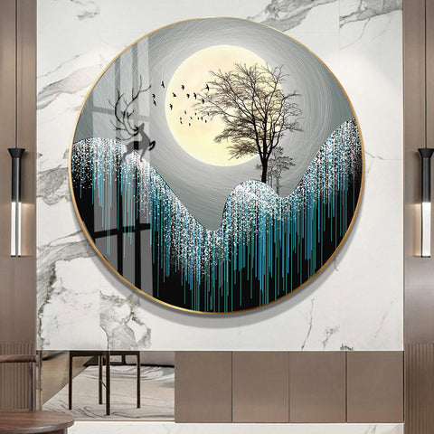50x50CM Deer& Moon full Drilled Diamond Painting round (no frame)