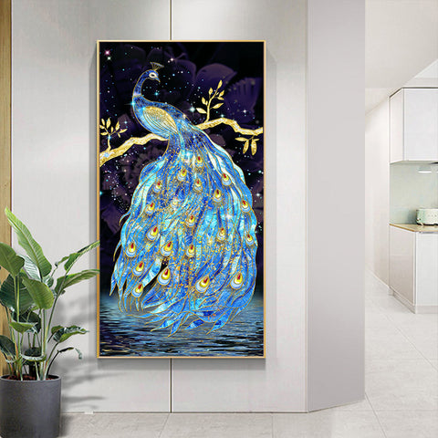 50x90cm blue peacock 5d diy diamond painting full drill NO FRAME