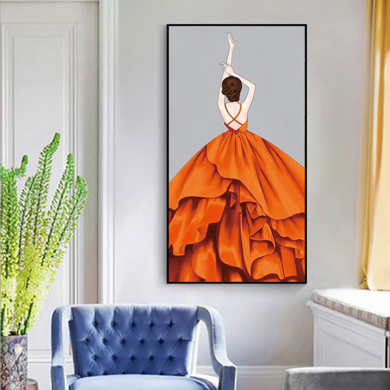 51x91cm Orange Girl Cross Stitch Kits 11CT Stamped Full Range of Embroidery Starter Kit for Beginners Pre-Printed Pattern