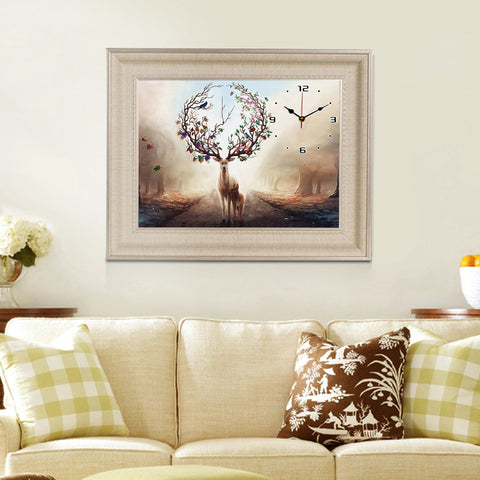 70X50cm Deer and Clocks Cross Stitch Kits 11CT Stamped Full Range of Embroidery Starter Kit for Beginners Pre-Printed Pattern Free inner works of clocks