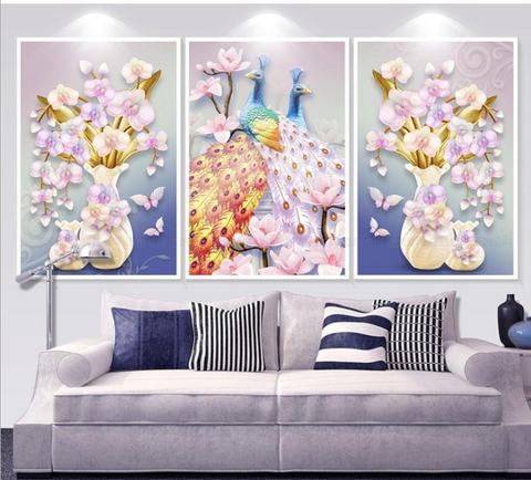 3PCS Peacock 150X72CM Cross Stitch Kits 11CT Stamped Full Range of Embroidery Starter Kit for Beginners Pre-Printed Pattern