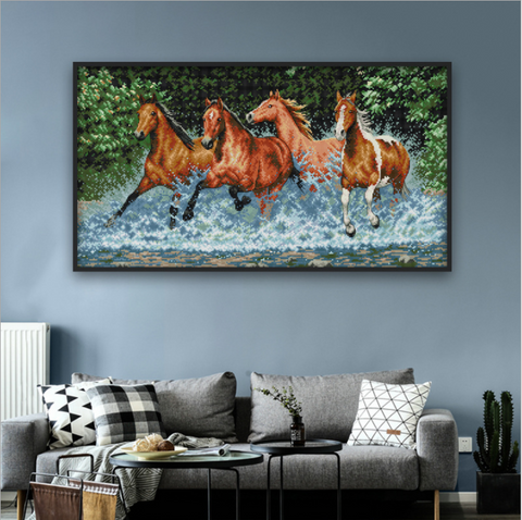 77X46 cm FOUR Horse Cross Stitch Kits 11CT Stamped Full Range of Embroidery Starter Kit for Beginners Pre-Printed Pattern