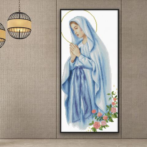 39x73cm Virgin Mary Cross Stitch Kits 11CT Stamped Full Range of Embroidery Starter Kit for Beginners Pre-Printed Pattern