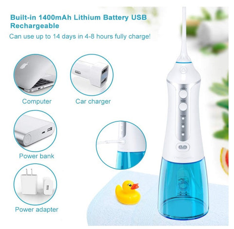 Dental Oral Irrigator 300ML Portable and Rechargeable IPX7 Waterproof 3 Modes Water Flosser Teeth Cleaner