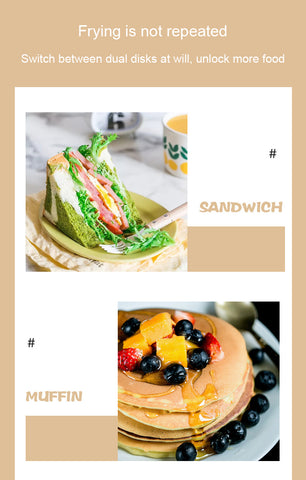 4 in 1 Multi-functions: Comes with 3 detachable plate for sandwich, waffle, and eggette,doughnut.