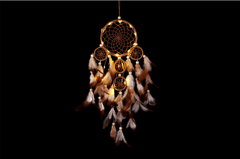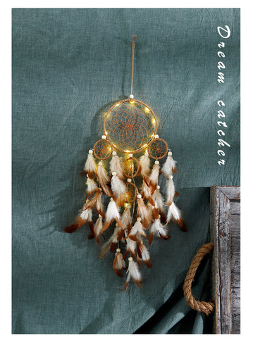 Handmade Dream Catcher With Light Room Decor Feather Weaving Wind Chimes Religious Mascot