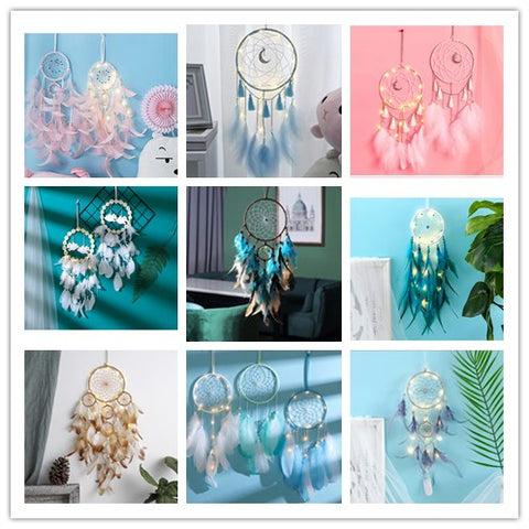 Handmade Dream Catcher With Light Room Decor Feather Weaving Wind Chimes Religious Mascot