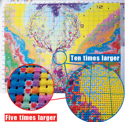 This is a 11CT stamped kit,the 11CT means there are 11 grids in one inch fabric,the stamped kit means the pattern has been printed on the fabric ,it is printed canvas and the pattern will be disappear after touch water.So after finishing stitching, put the fabric in water for half an hour, then make it dry, and then you can make a frame for it.