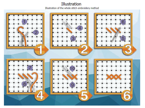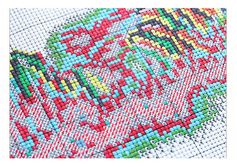 This cross stitch design should be completed with 3-strands thread. Each line we provide is composed of 6 strands, so you need to divide the 6 strands into two 3-strand lines before you work.