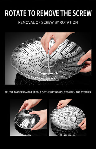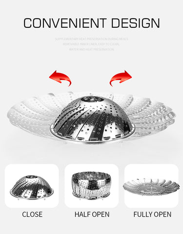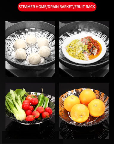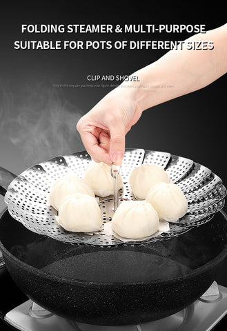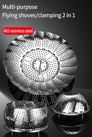 Folding stainless steel steamer, kitchen vegetable and fruit food basket, steamer shelf, cookware and cookware