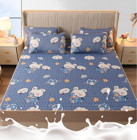 Space bear-3pcs Summer Cool Latex Bed Mat Set Anti-skid Sleeping Mat with Pillowcase Bed Protection Pad Ins Bedding Home Room Decor